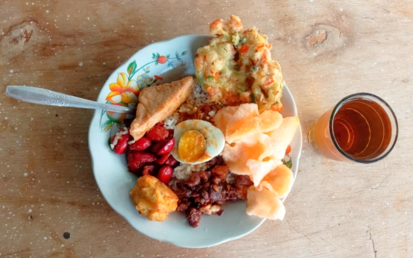 Harga perporsinya hanya Rp 7.000 – Rp 15.000, tergantung dengan lauk atau tambahan menu yang dipilih.